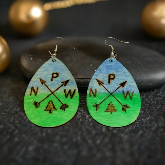 Arrows PNW Earrings Wood Burned and painted Light Weight Teardrop Style