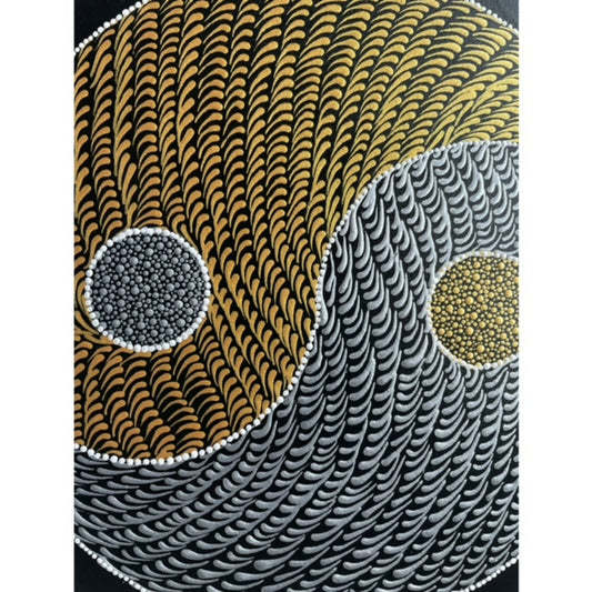 Yin Yang with Water and Fire Design on a Round Wooden Board