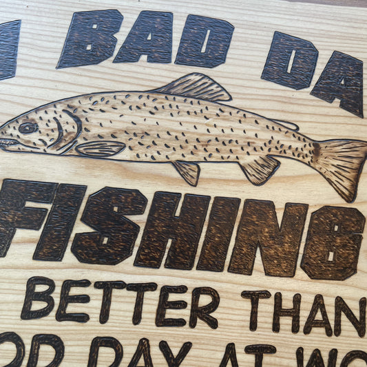 Butter Board Serving Tray 18in by 14in with a Quote A Bad Day Fishing