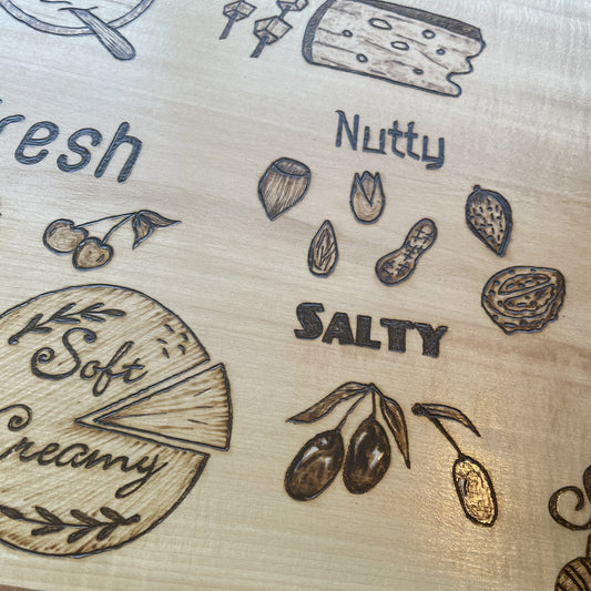 Cutting Board Meats Board Butter Board with Wood Burned Artwork
