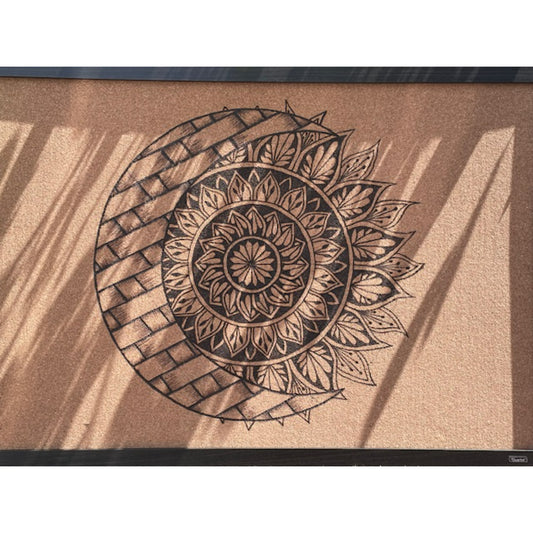Sunflower and Moon Wood Burned Artwork on a Big Cork Board