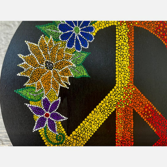 Peaceful Beauty 11.75in Floral Dot Art Peace Sign