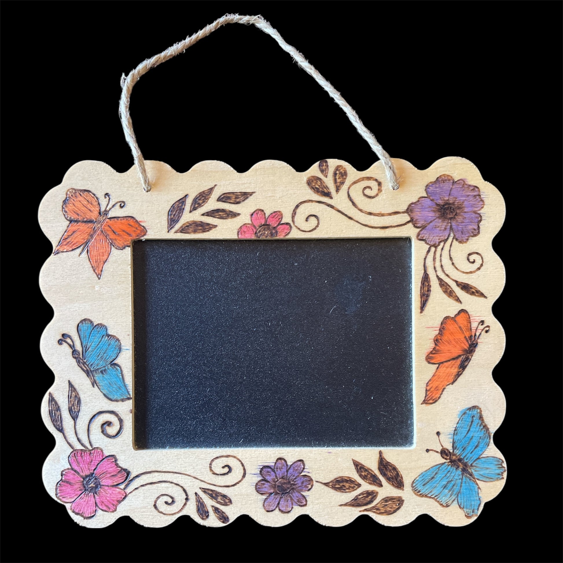 Chalk boards Room Decor Door Hanging with Wood Burned Designs and Painted