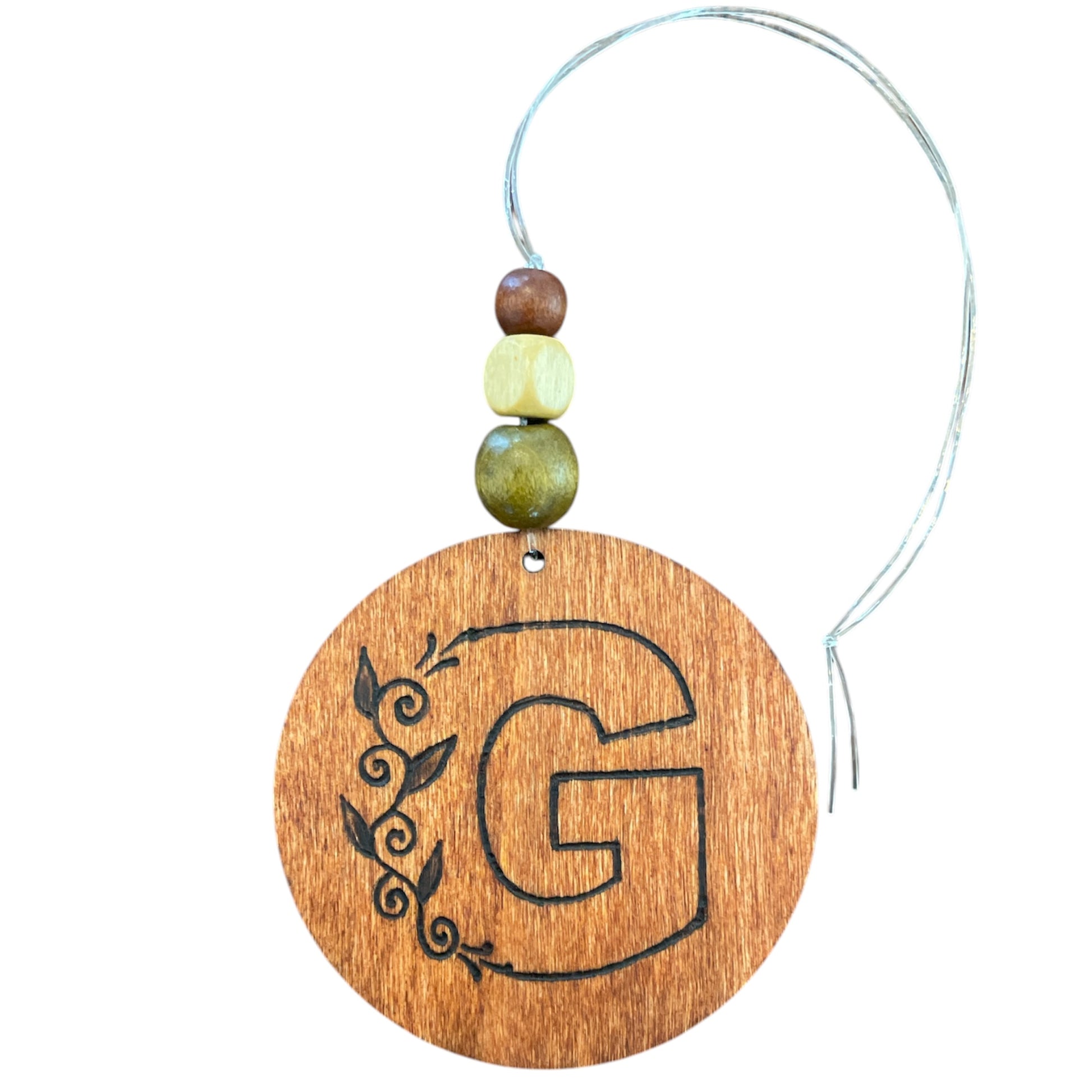 Each ornament features the first letter of your name, beautifully wood-burned by hand, accompanied by an uplifting, positive word to match. Crafted from quality wood and finished with a rich stain for a lasting and elegant look.