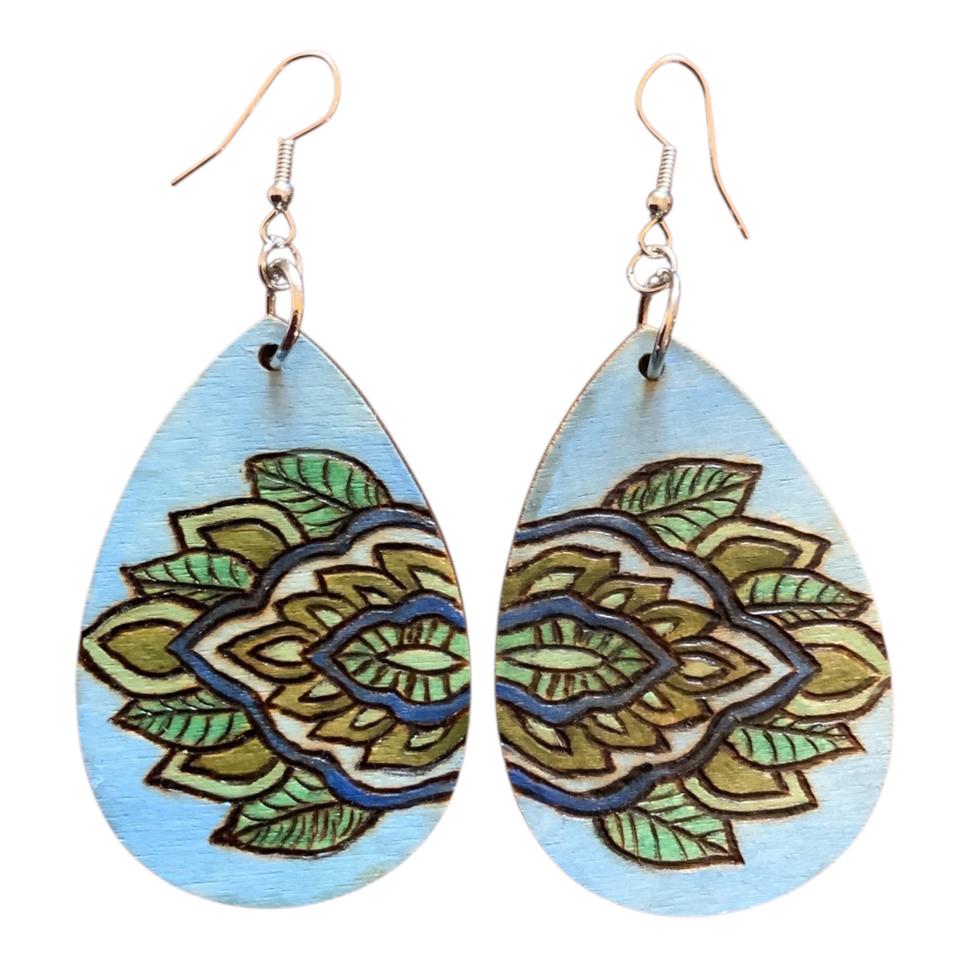 These earrings are meticulously crafted from lightweight wood. Expertly burnished and painted by hand, each piece is unique and offers a one-of-a-kind look. The earrings you see here are an exact match for what you'll receive. Custom and bulk orders available. Contact us with your request. Packaging may vary, due to availability.