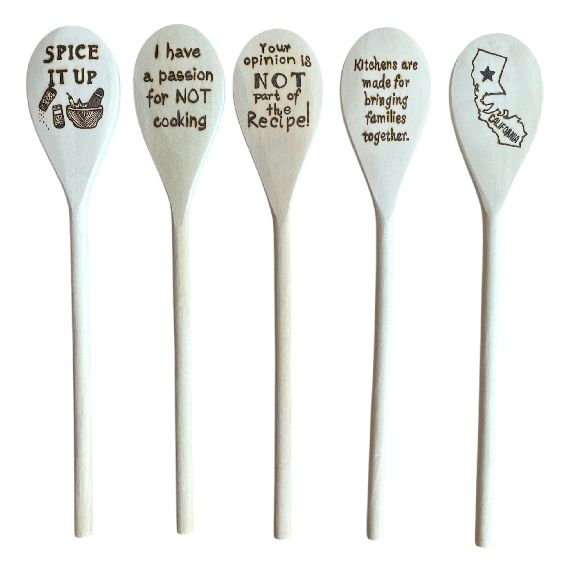 Rubberwood 14" Cooking Spoons| Eco-friendly| Custom Designs| Humor Quotes