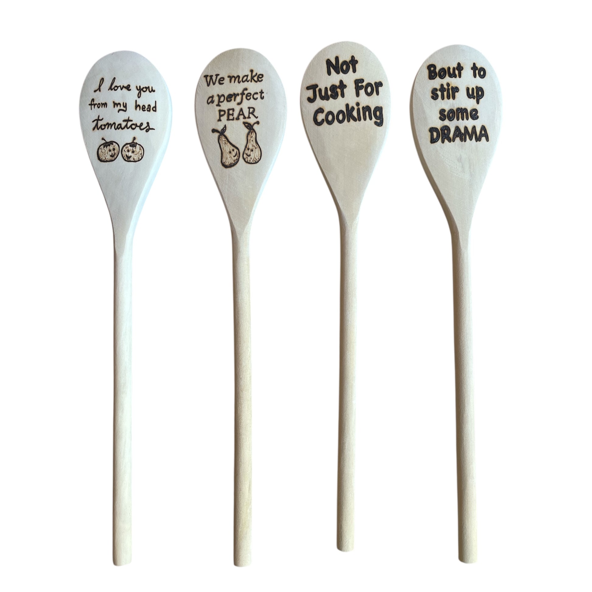 Rubberwood 14" Cooking Spoons with Custom Designs Eco-friendly Wood Burned