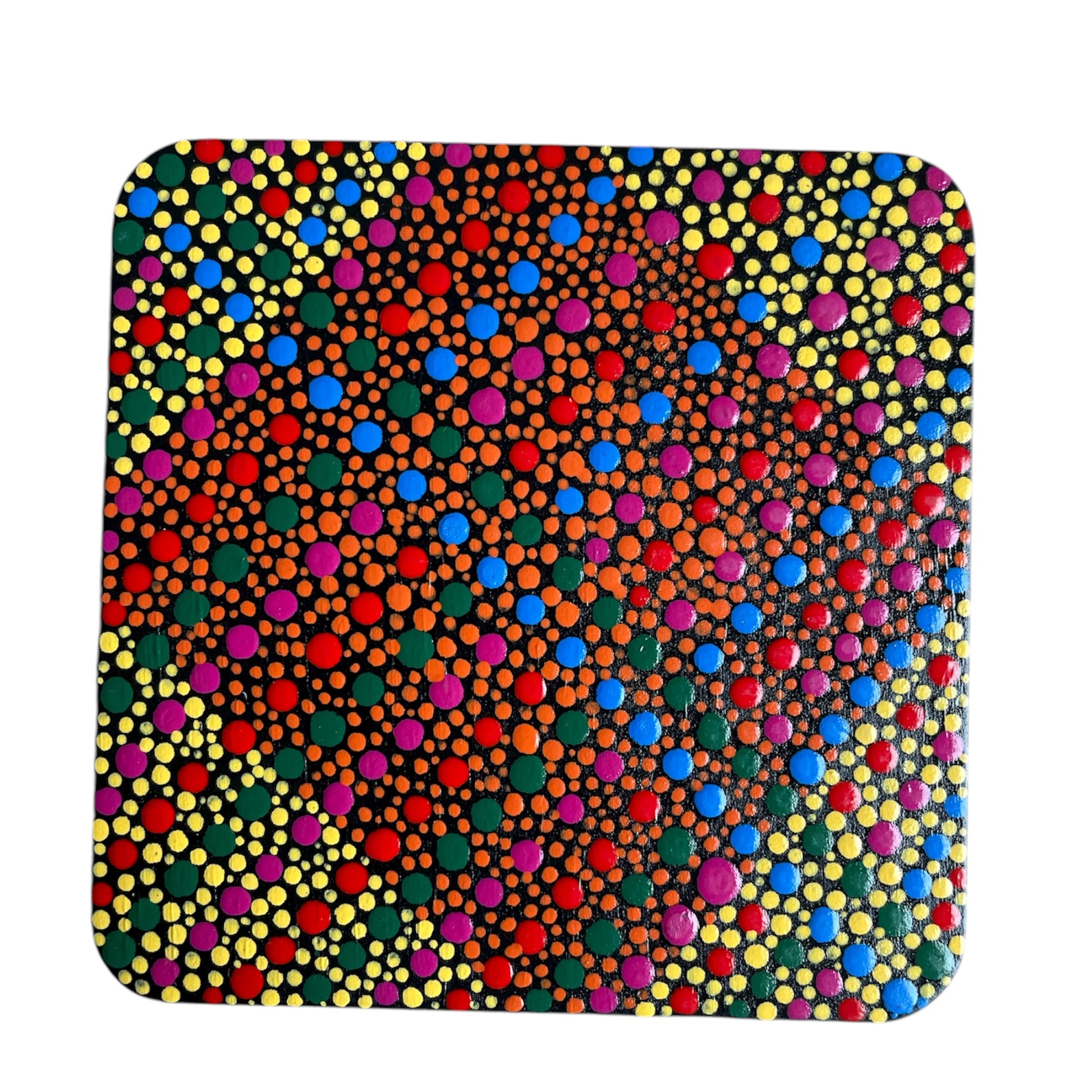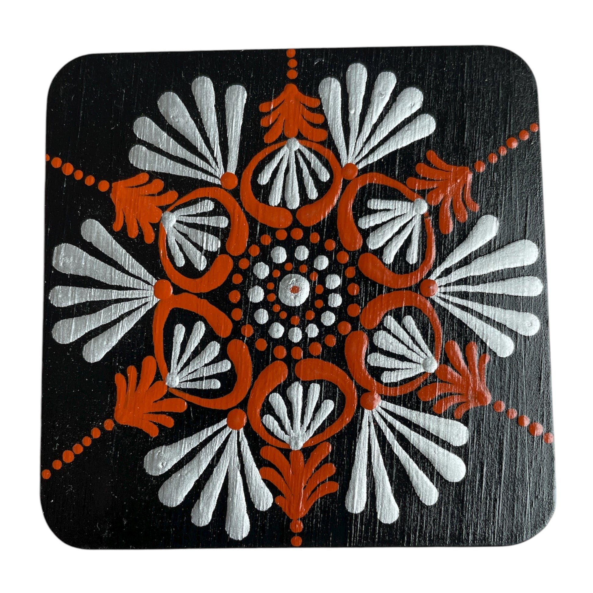 Square Drink Coasters Painted with Unique Mandala Designs Centerpiece Decor