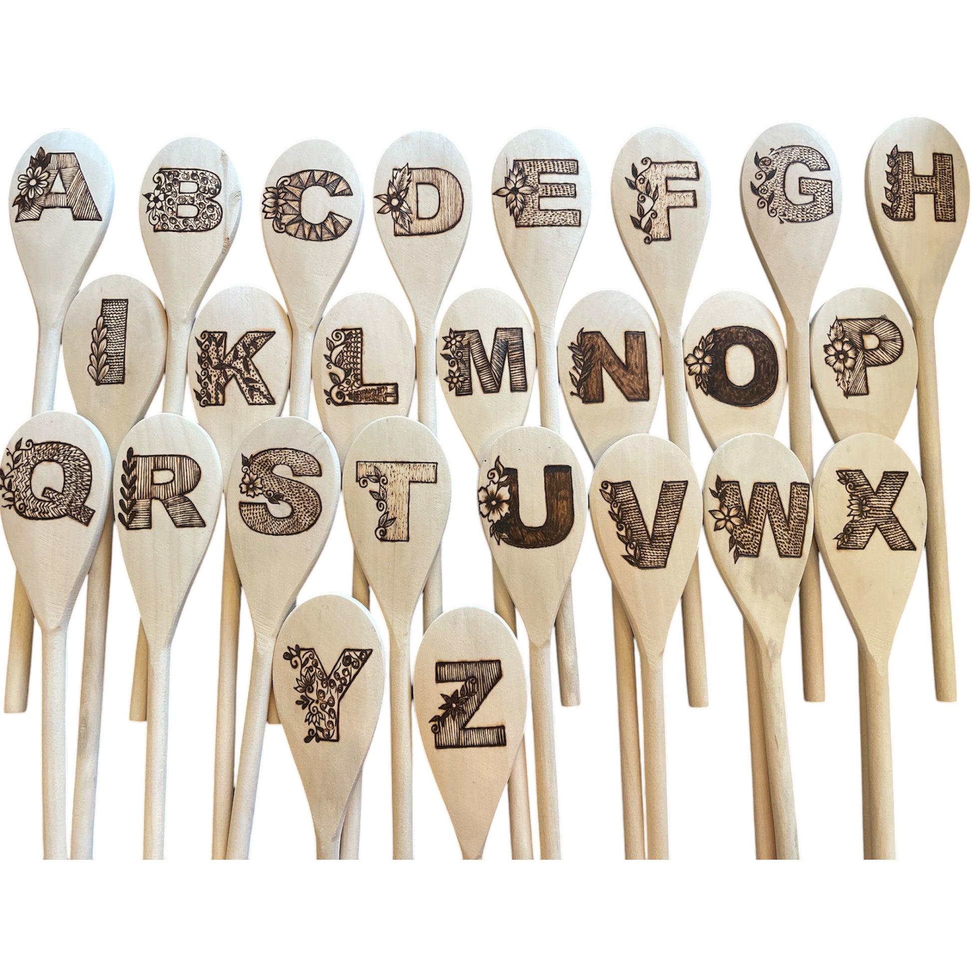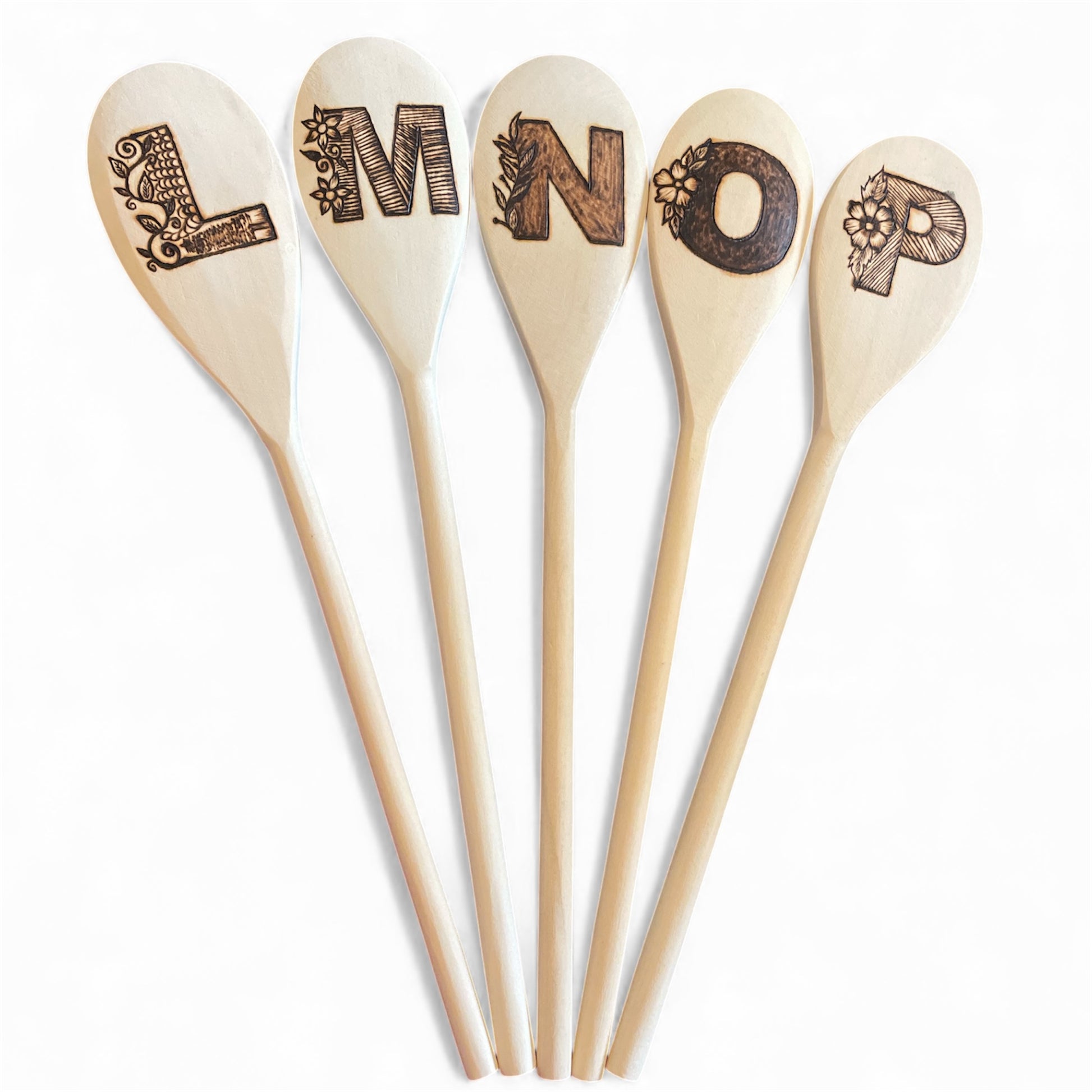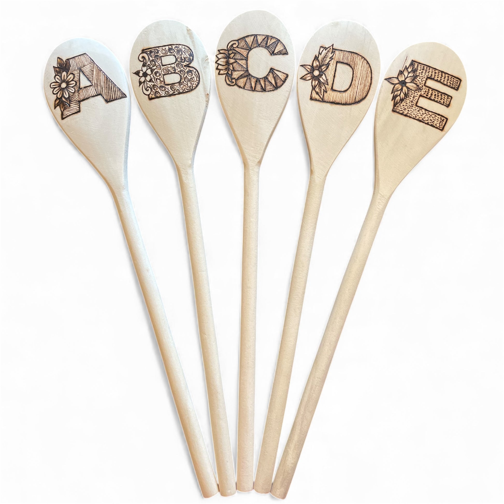 Rubberwood 14" Cooking Spoons| Eco-friendly| Custom Designs| English Alphabets Spoons