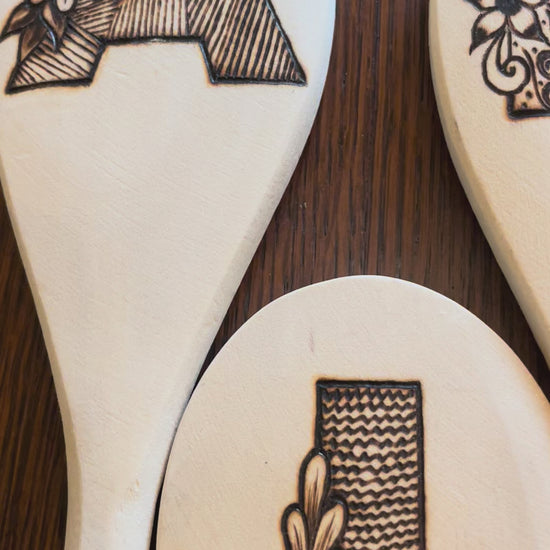 Care Instructions: To maintain the quality of your spoon, hand wash only and sanitize. Using a wooden conditioner or oil (Olive oil is fine) is recommended to preserve and protect the design.